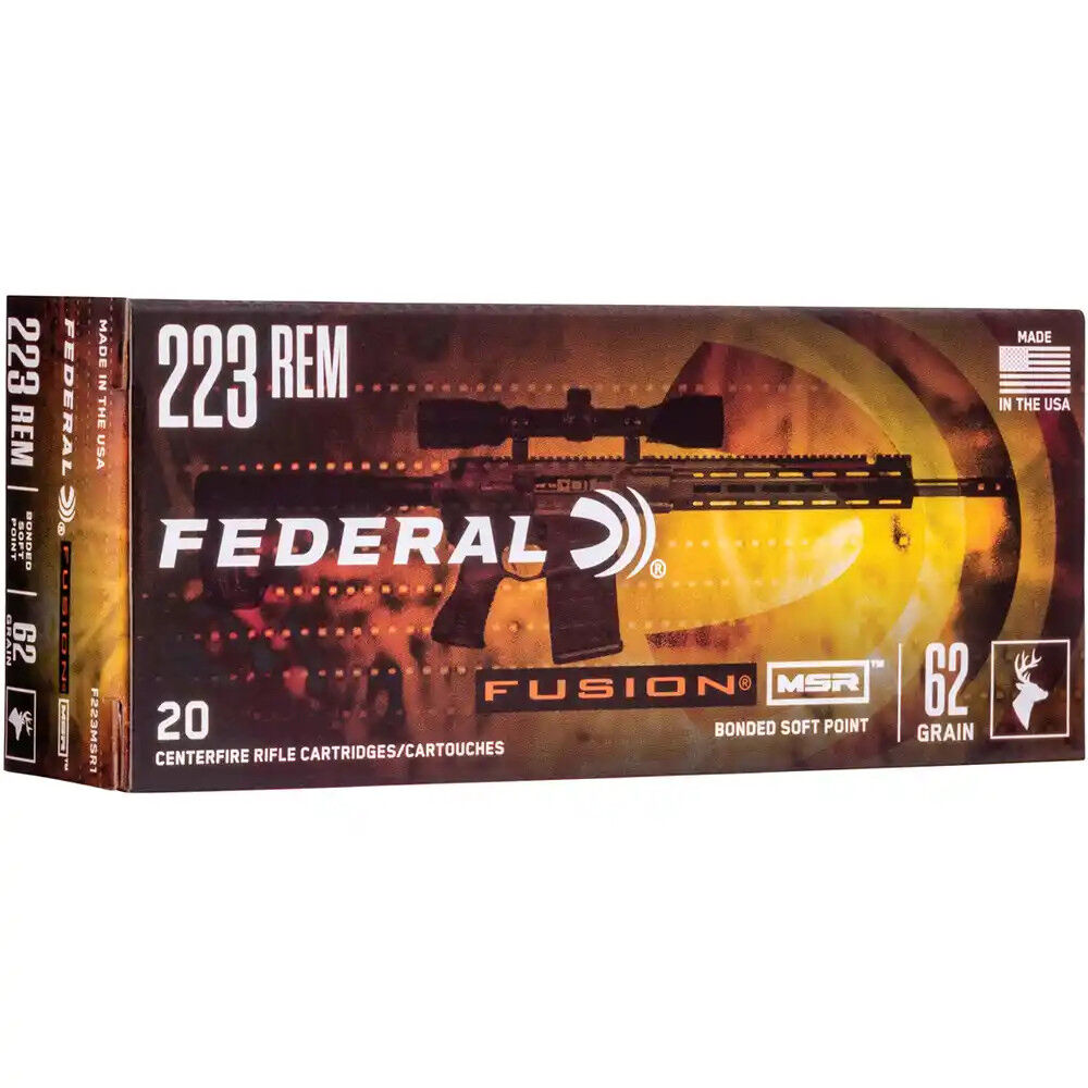 Das moderne Sportgewehr ist nicht nur irgendeine Waffe. Es ist eine hochgradig angepasste Jagdmaschine und sie braucht Munition, die ebenso maßgeschneidert ist: Mit der Federal Fusion® MSR erhalten Sie eine Jagdpatrone, die vom Zündhütchen bis zum Projektil in nahezu jeder Komponente für den Einsatz in modernen Sportgewehren designed ist und ballistische Höchstleistung in kurzen Läufe bietet. Sehr gut ist die Patrone für AR-15 Waffen geeignet.